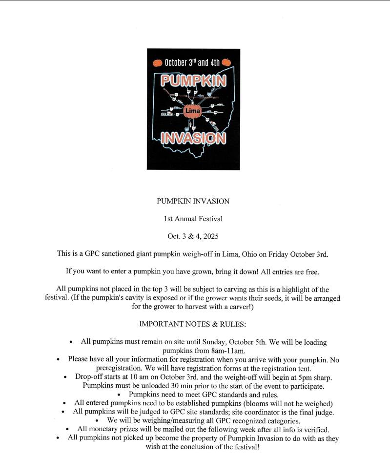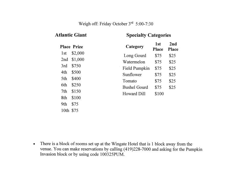 Pumpkin Invasion Lima, OH October 3rd Prize breakdown click here